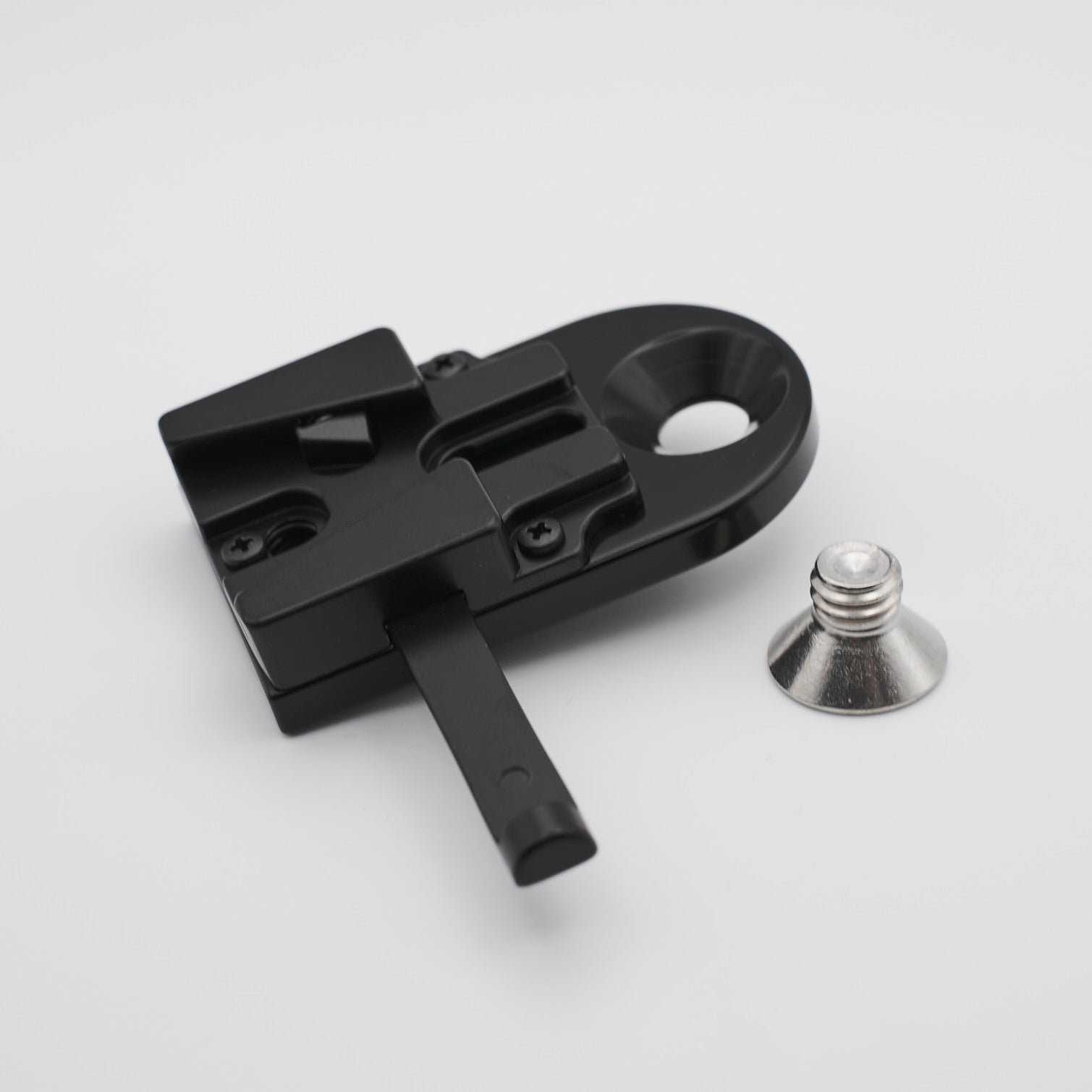 Professionally CNC cut from 6061 Aluminium - designed to attach with a single counter sunk screw and keep itself in place with a locating pin which slots into the cheeseplate.